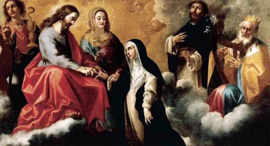 A tertiary of the Dominican Order, she was favored with visions of Christ from the age of seven.