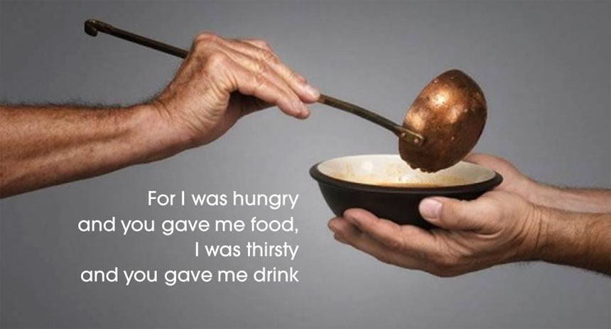 “For I was hungry and you gave me food, I was thirsty and you gave me drink, a stranger and you welcomed me, naked and you clothed me, ill and you cared for me, in prison and you visited me.”