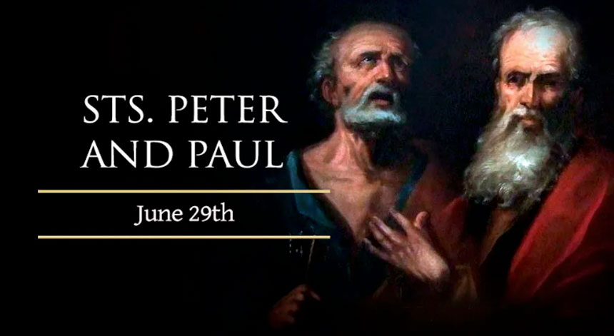 We venerate today, June 29th, two great Apostles, Peter and Paul. They are the solid rock on which the Church of God is built. Together, through preaching and martyrdom in Rome, they set the Holy See.