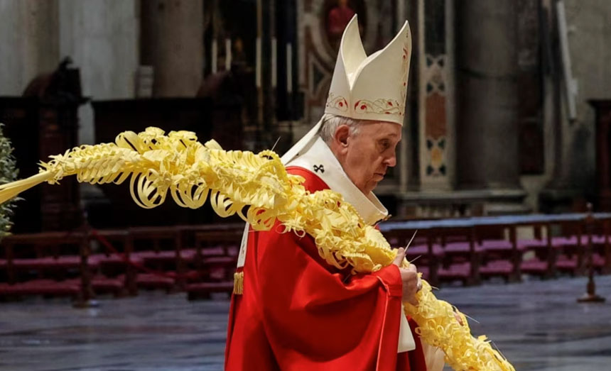 At the end of Palm Sunday Mass, the Pope said: “And now we turn in prayer to the Virgin Mary. Let us learn from her to stay close to Jesus during the days of Holy Week, to arrive at the joy of the Resurrection.”