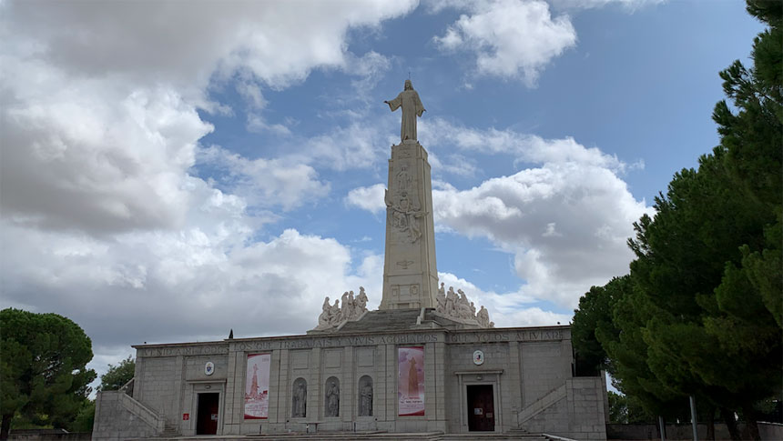 I’m reaching you today from the Cerro de Los Angeles, Hill of the Angels, the geographic center of Spain, in the south of Madrid. The site hosts a fourteenth-century monastery named Our Lady of the Angels (Nuestra Señora de Los Ángeles), a shrine, and magnificent monument dedicated to the Sacred Heart of Jesus.