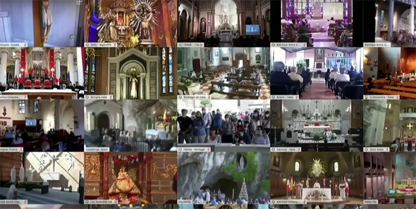 Shrines around the world who participated included the National Shrine of the Immaculate Conception in Washington, D.C., Our Lady of Guadalupe, Our Lady of Fatima, Our Lady of Lourdes, San Giovanni Rotondo, and Our Lady of Pompei.